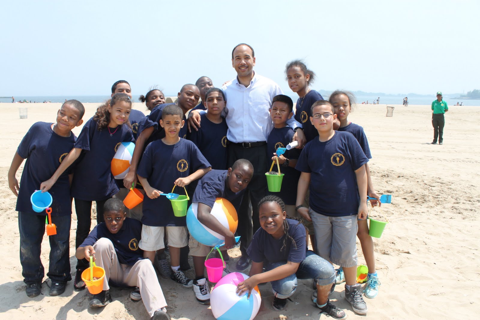 Well, at least someone’s at the beach. Bronx Borough President Ruben Diaz, Jr. hung out with 5th graders from PS 79 earlier today. He joined other elected officials and Parks Commissioner Adrian Benepe to celebrate the 75th anniversary of the beach’s creation and the opening of beach season. Over the off-season, Orchard Beach received an infusion of 268,000 cubic yards of new sand to fight off erosion. Orchard Beach is open daily and staffed with lifeguards from 11 a.m. to 6 p.m.