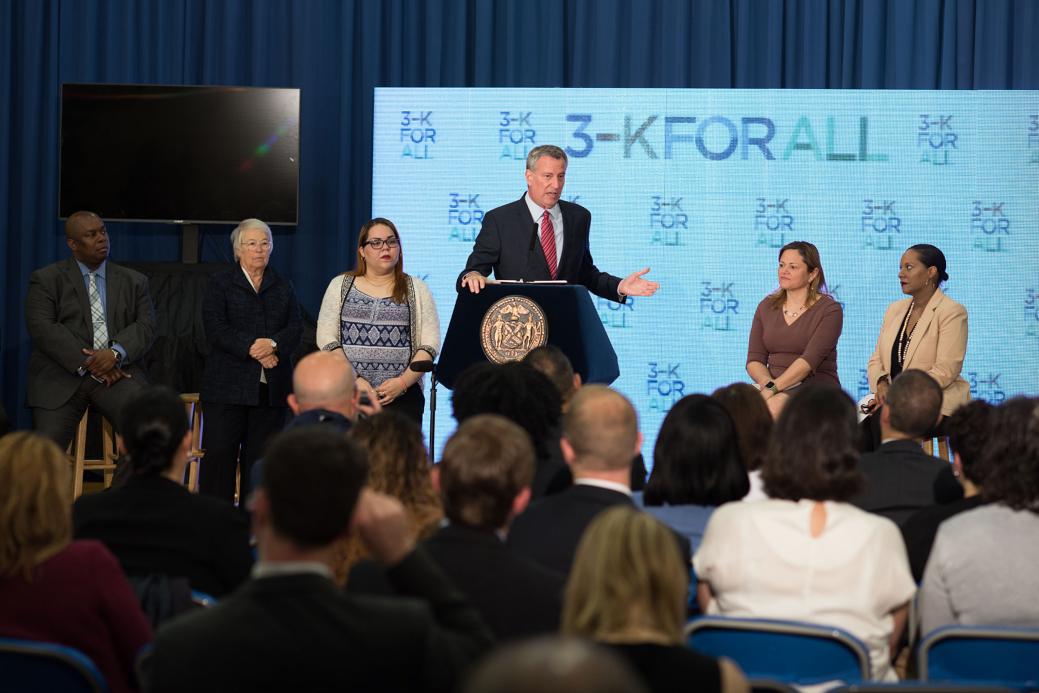 “We know there is a precious opportunity to reach children at the moment when they can learn and grow the best,” de Blasio continued. “The fact is the most important development of the human mind occurs before the age of 5. Parents see it and scientific research confirms it. There is one opportunity to get it right. This is the opportunity we have missed throughout our society for generations.”