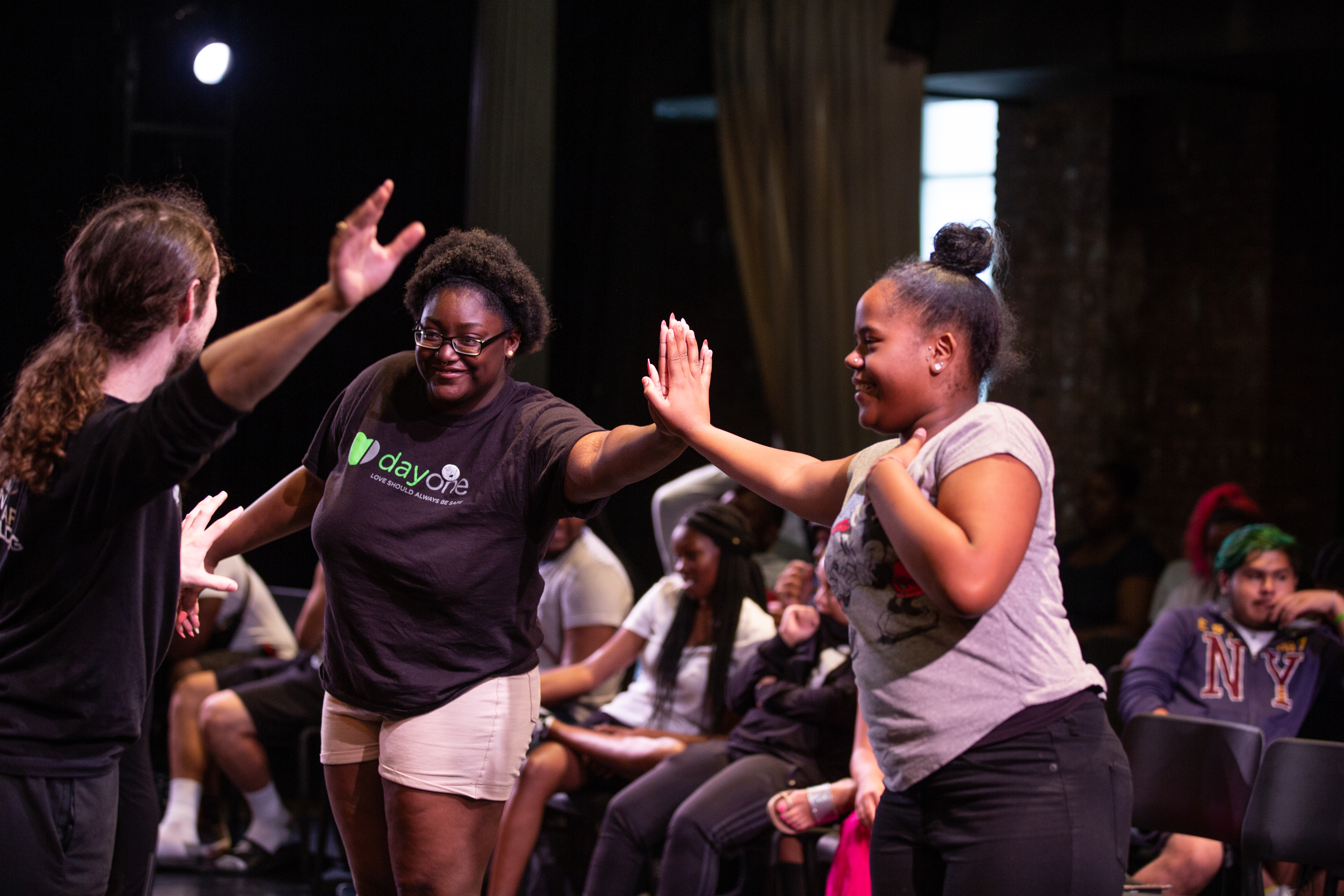 “Hands are for Holding” held its first assembly in 2014, in conjunction with Day One, a youth-focused organization aiming to end dating abuse and domestic violence. The program expanded this year thanks to the Mayor’s Grant for Culture Impact, which funded six-month partnerships between city offices and cultural organizations. Gibney, along with six other groups, was one of the first to receive this $50,000 grant.
