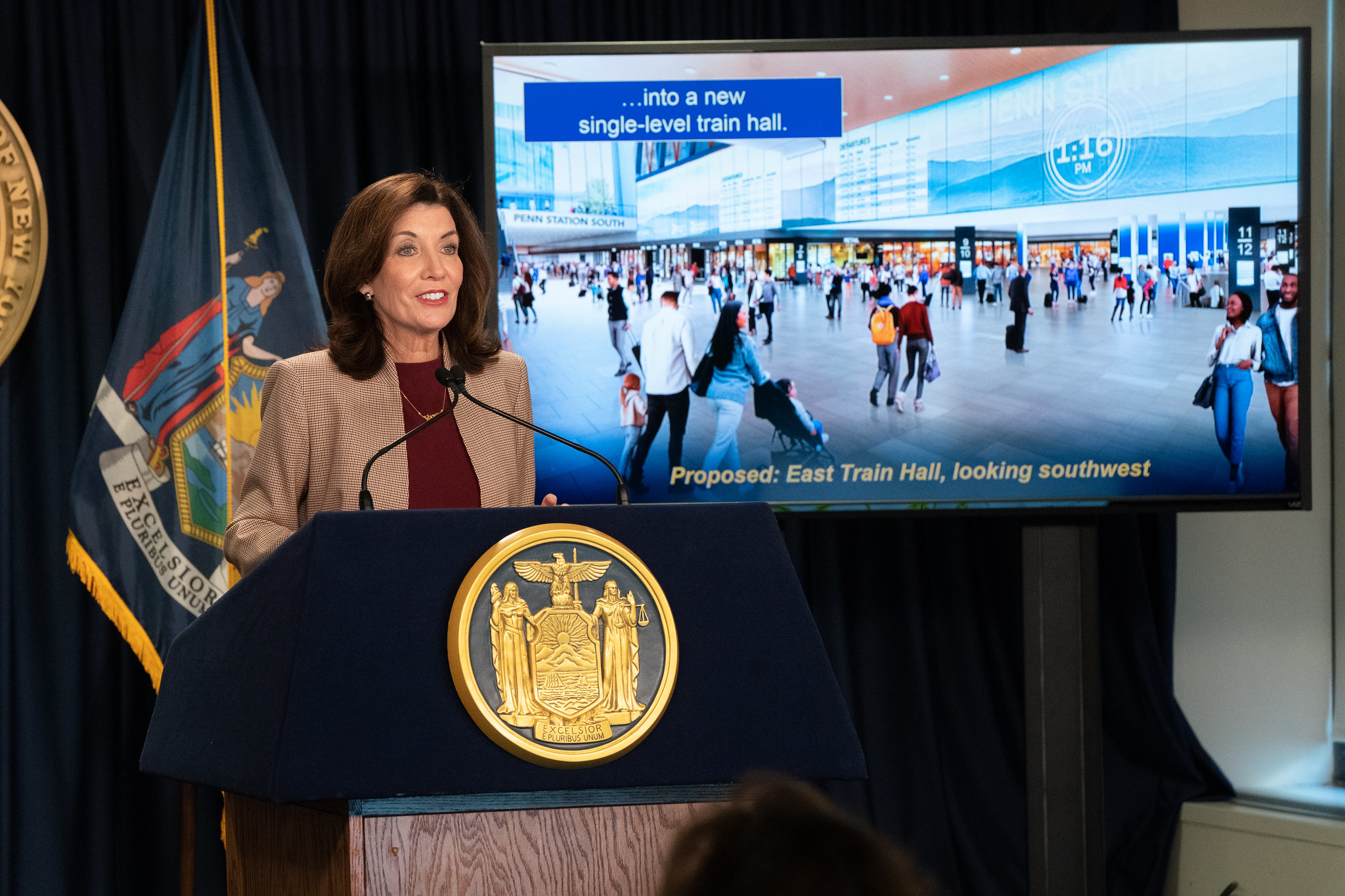 Gov. Kathy Hochul unveiling the state’s plan to redevelop Penn Station and the surrounding blocks, at a press conference in November 2021.The one thing that unites all New Yorkers is our collective disdain for the derelict old Penn Station. That’s why it makes no sense why some would come out against a plan to actually make it and the surrounding district better.
