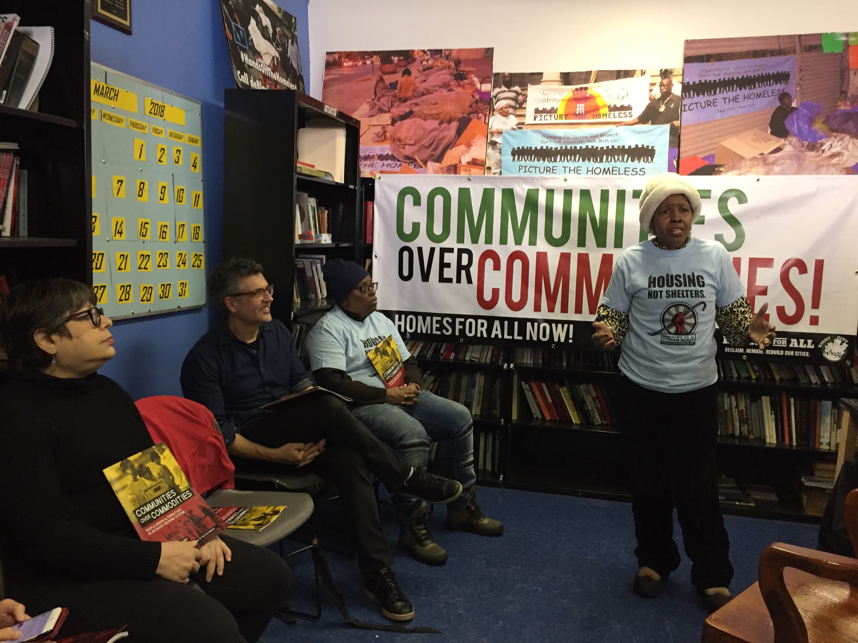Arvernetta Henry of Picture the Homeless heralded examples of community land trusts that she’d visited on the Lower East Side and in Boston and argued that housing would be better managed when owned by residents: “Because it’s theirs, they’re going to make sure it’s well kept,” she said.