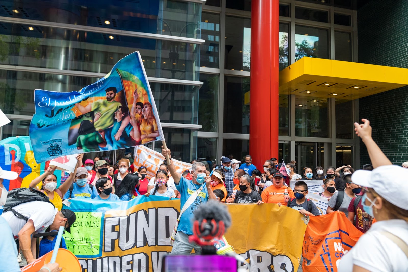 A rally for passage of the Excluded Workers Fund, which was included in the state budget after a hunger strike campaign by activists.This story was originally published by Documented on Aug. 27, 2021