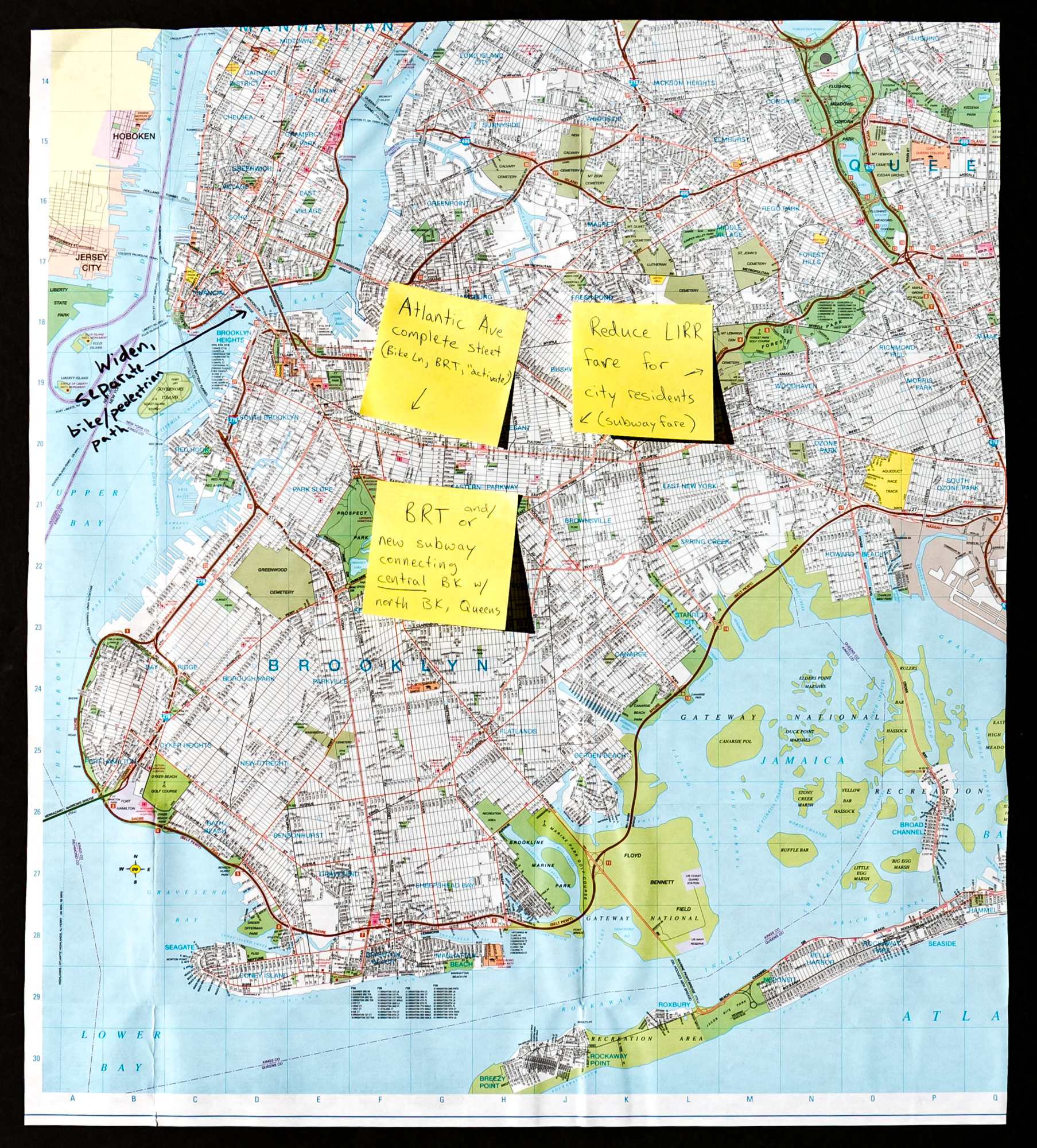 | Turn Atlantic Avenue into a ‘complete street’ with bike lanes and bus rapid transit as well as private vehicles | |